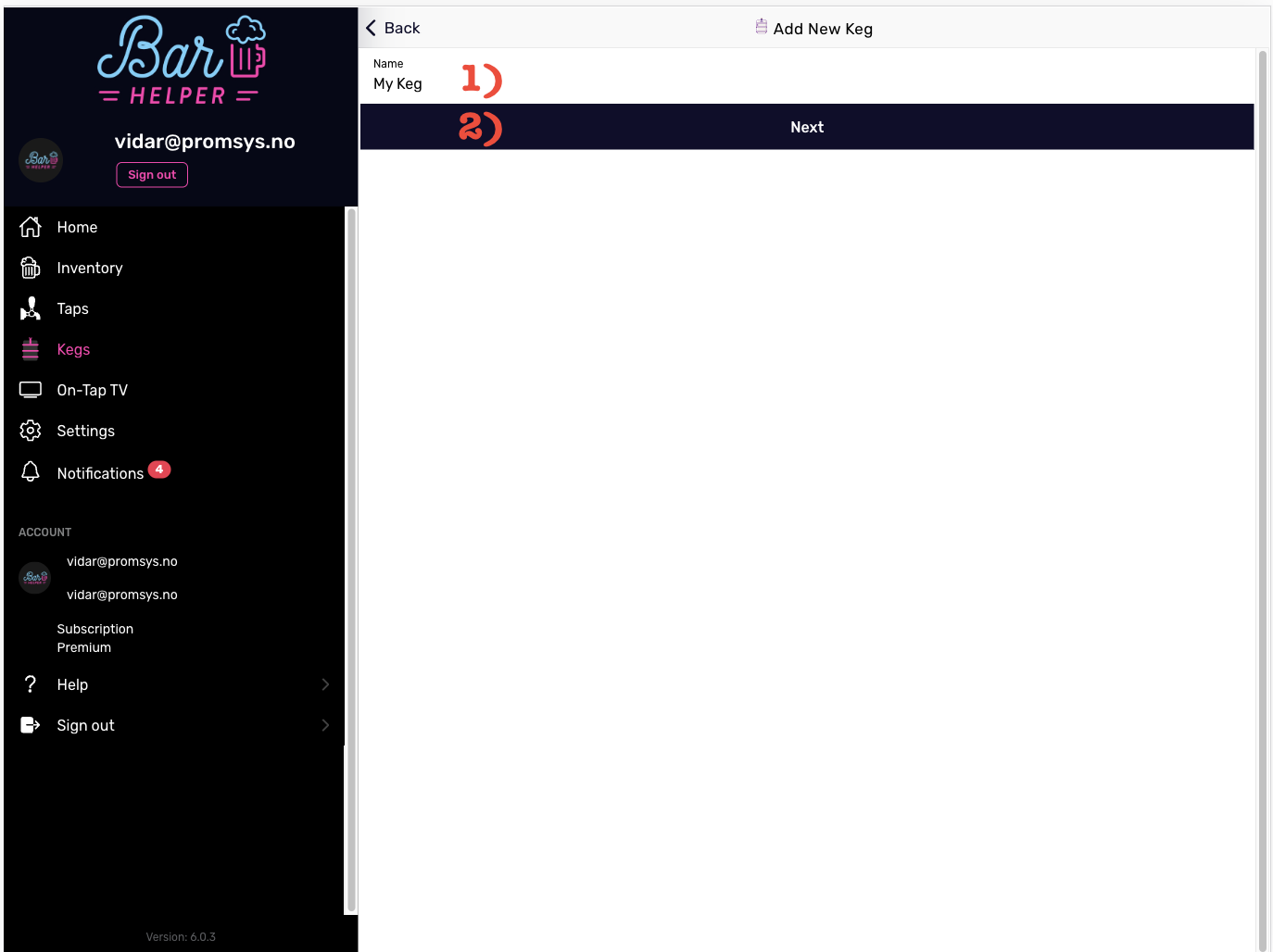 1. Enter the name of the keg.