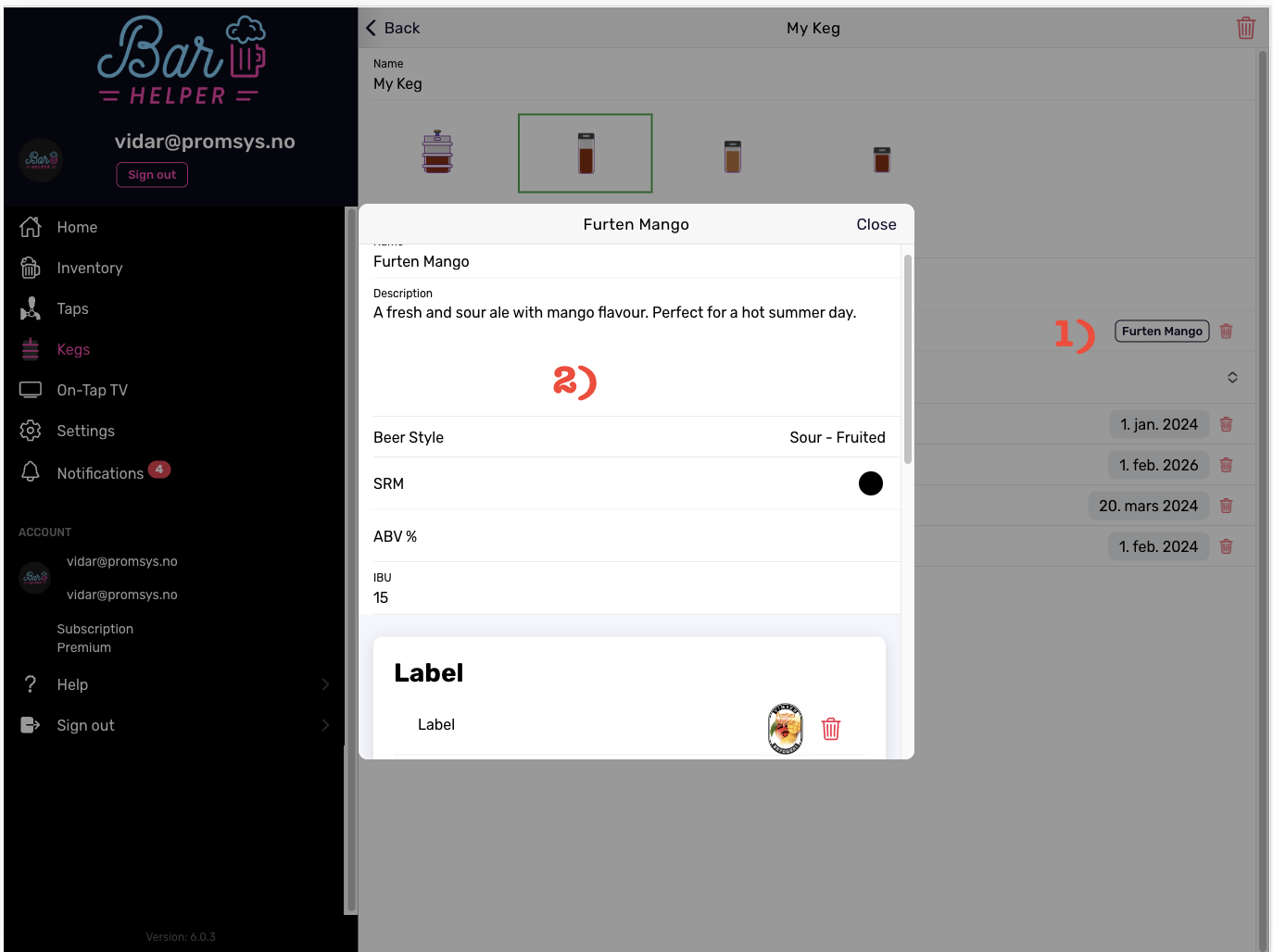 6. **Location**: Describes where this keg is located. You can add or modify this under [Storage Locations](https://docs.barhelper.app/english/inventory/storage-locations).